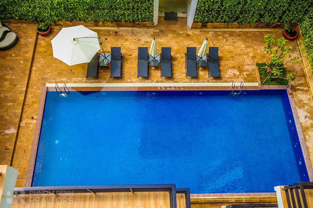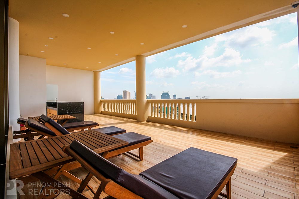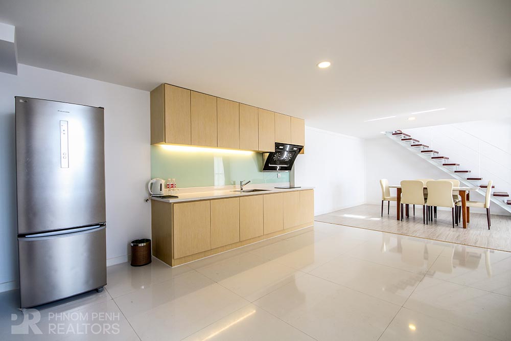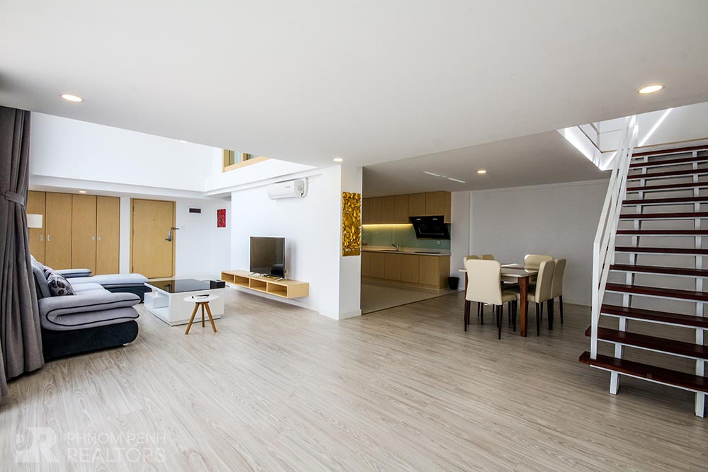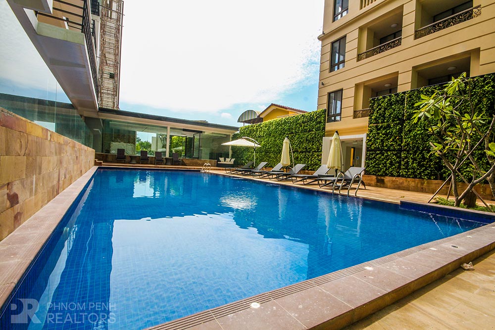 This condominium is located in Tonle Bassac neighborhood has 2 bedrooms, 3 bathrooms, natural light, flat screen TV, new furnishings, hardwood floor and built in closet. Building amenities include internet, cable, cleaning 2 times a week, water supply, propane, meeting room, movie room, view space, gym, swimming pool, steam, sauna, jacuzzi, restaurants, security and car, motorbike, bicycle parking.