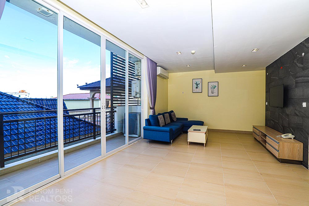 This beautiful apartment with full of natural light is located in Tonle Bassac neighborhood. It has 2 bedroom, 3 bathroom, a city view balcony. This fully furnished unit is equipped with air-cons, hot water, oven, refrigerator, a flat-screen TV, washing machine and built-in closets. The unit services included with the internet, water, garbage, cable TV, cleaning 2 times per week , and changing bedsheet 2 time per month . Building amenities include with swimming pool, fitness center, steam, sauna, security, elevators, parking space for car, motorcycle and bicycle.