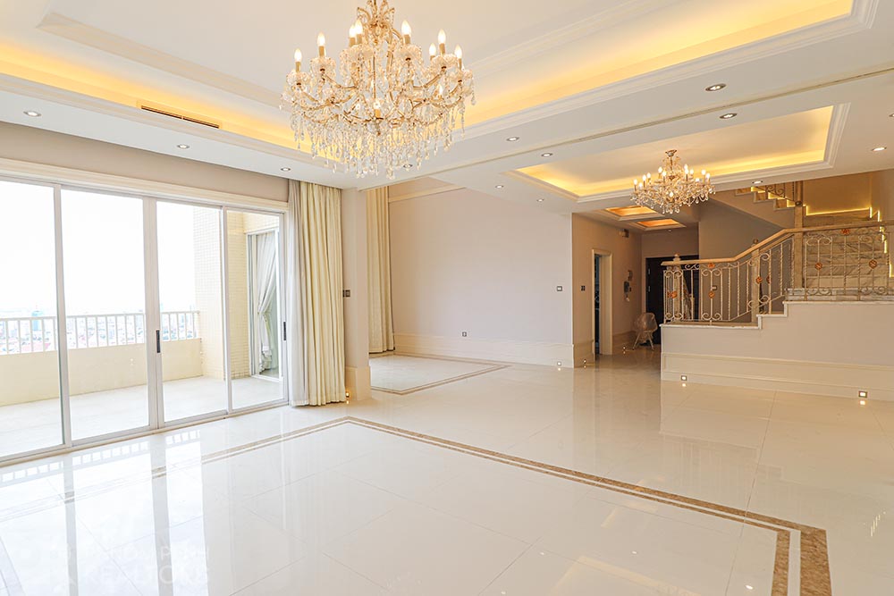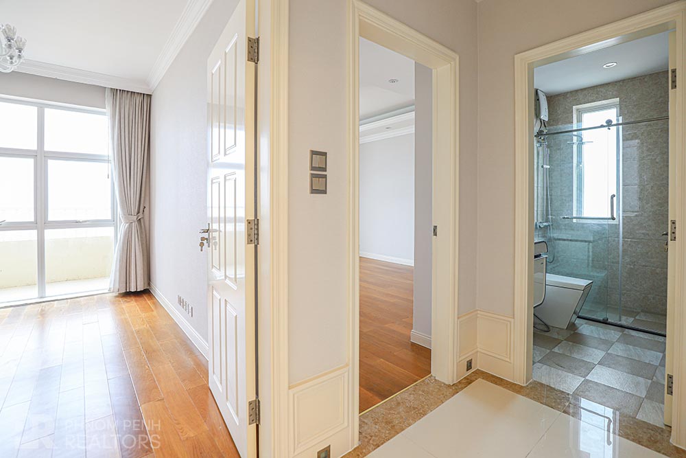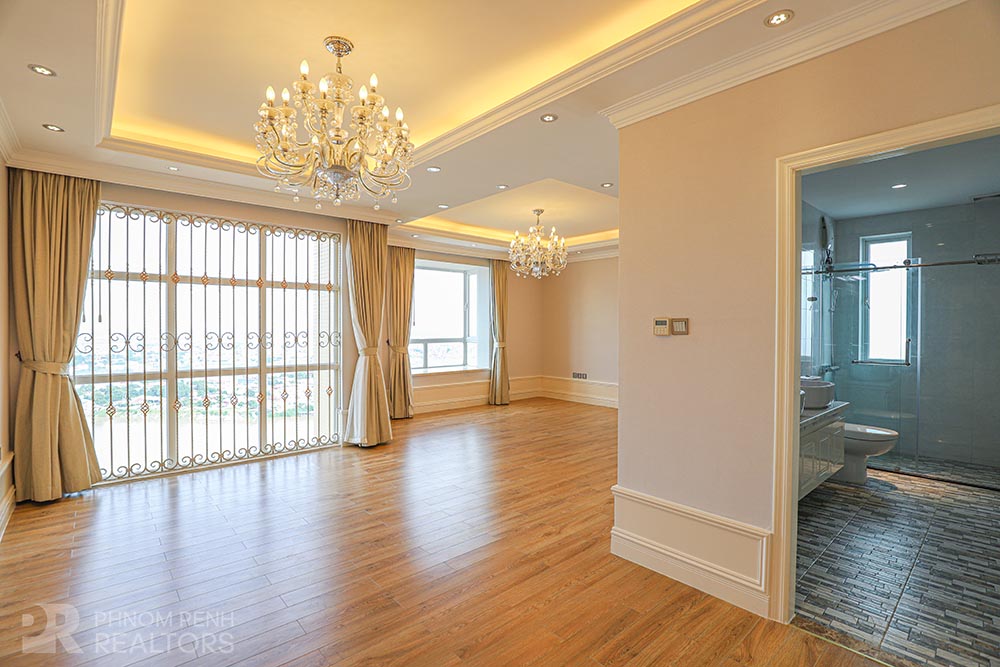 This stunning condominium is located in Tonle Bassac neighborhood, it has 5 bedrooms, 4 bathrooms, built in closets, natural light outdoor space and city view. The unit is equipped with a balcony and oven. Building amenities include parking (car, motorbike and bicycle). This property has a big balcony with the beautiful view of city and river and full of natural light.