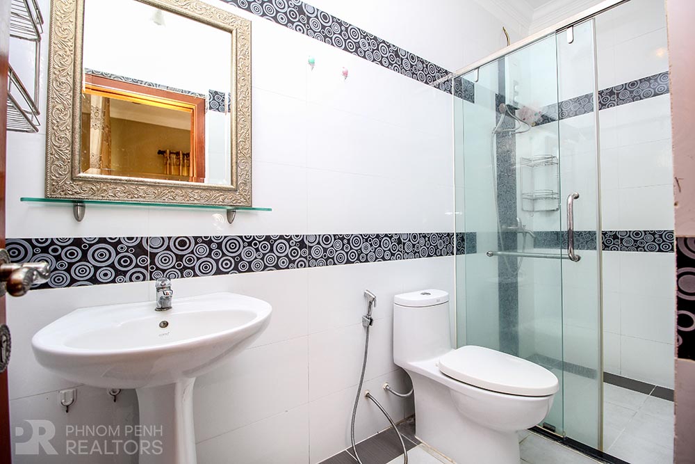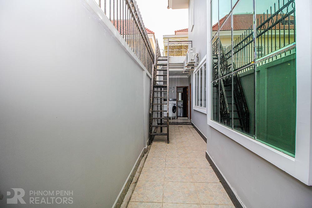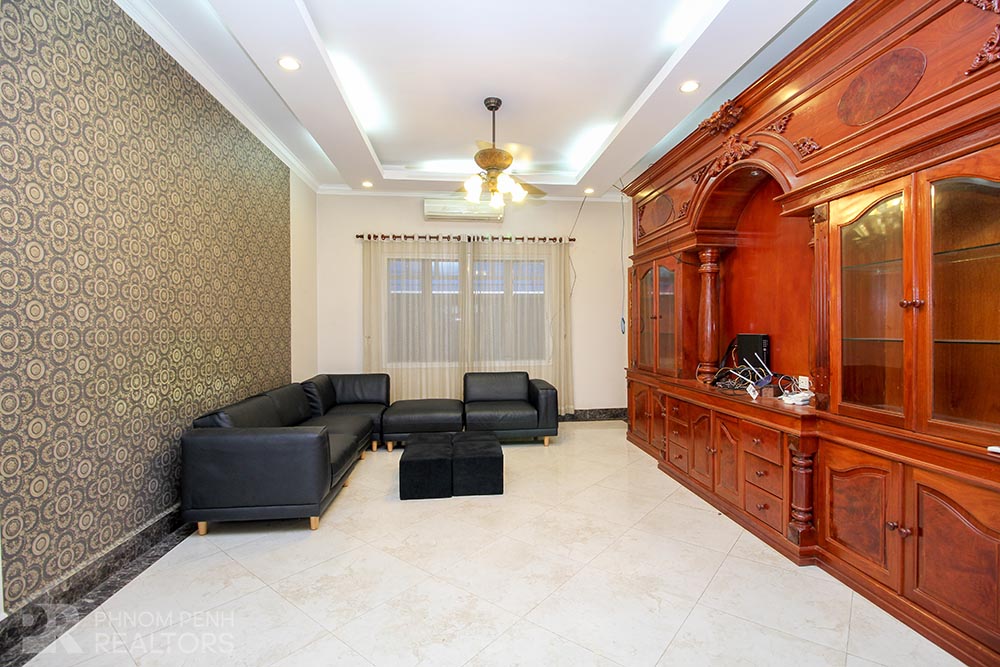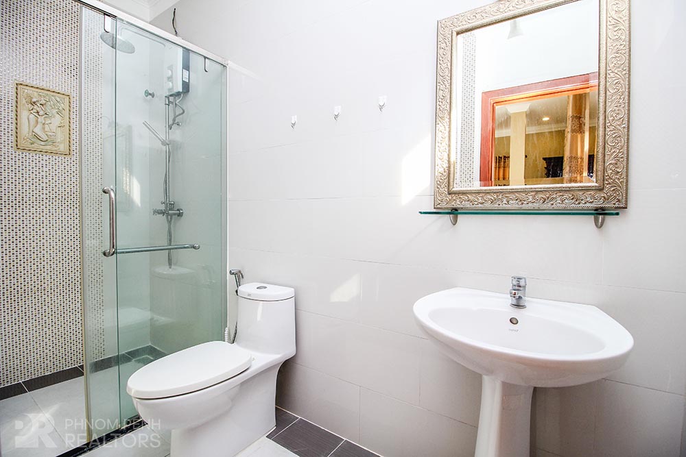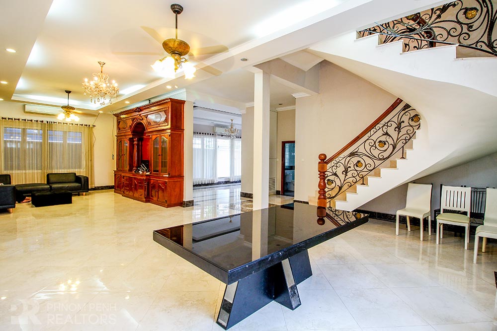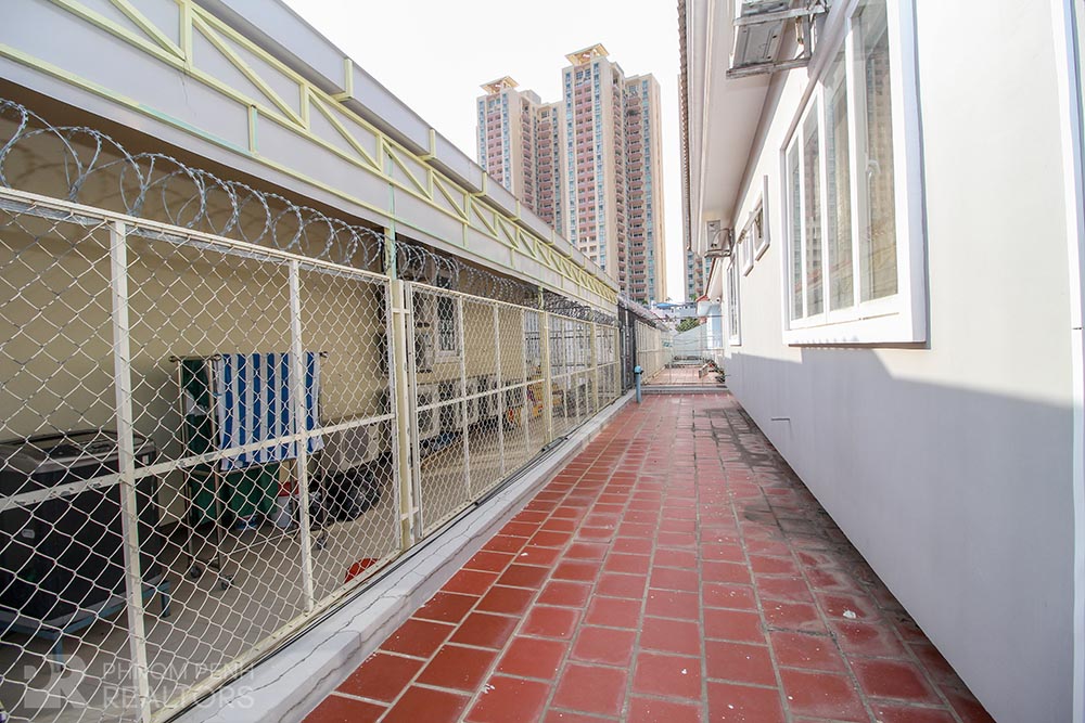 This villa is located in Tonle Bassac has 5 bedrooms, 6 bathrooms and natural light. This property is equipped with a terrace, a garden, balconies, furnishings, air conditioners, hot water and in unit washing machine. Villa amenities include car, motorbike and bicycle parking.