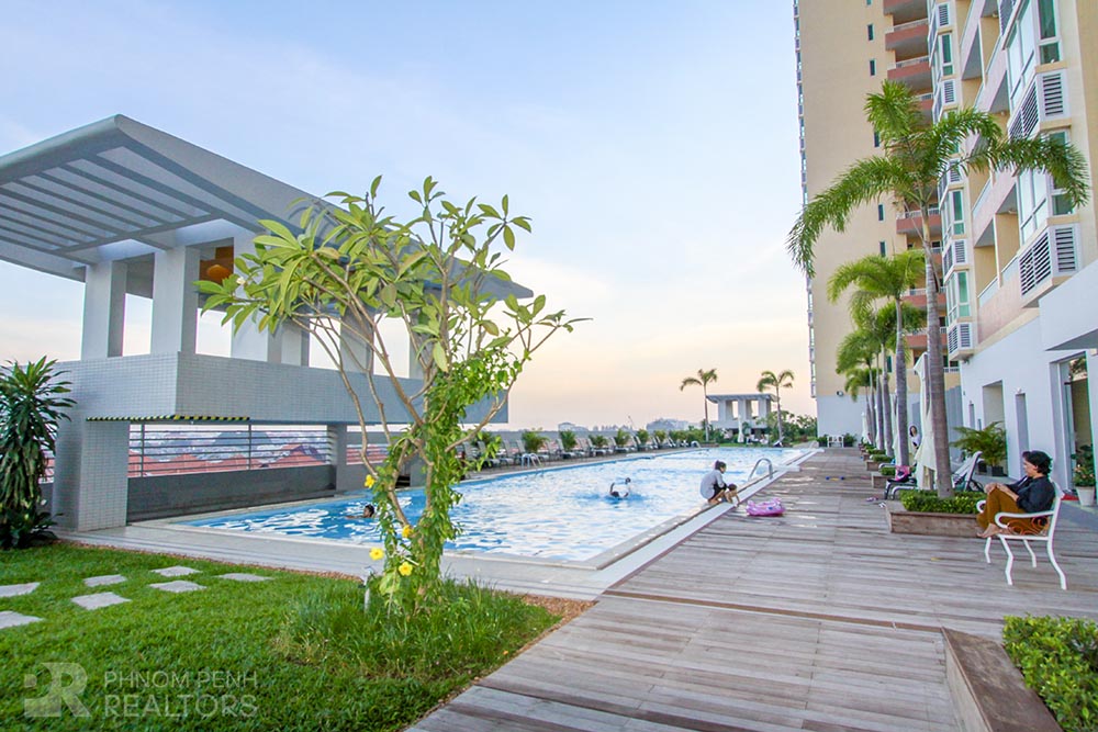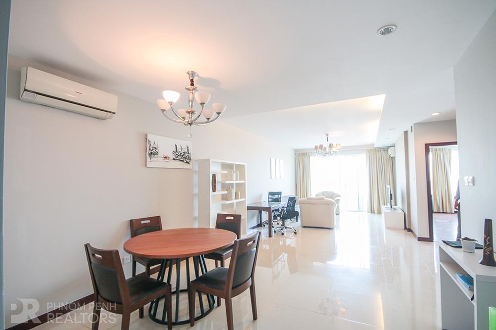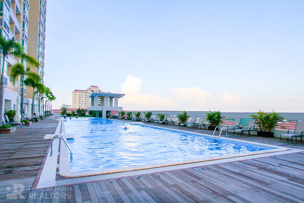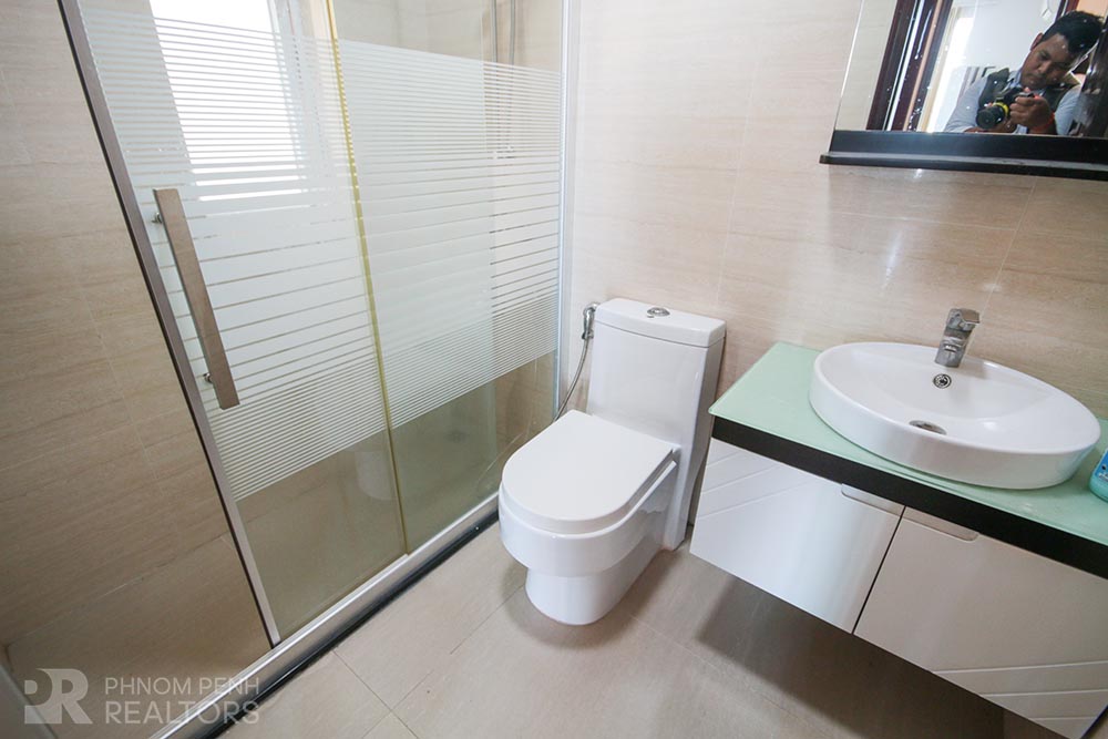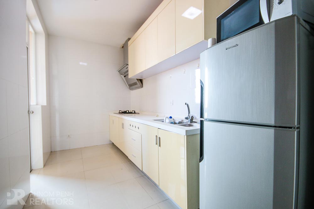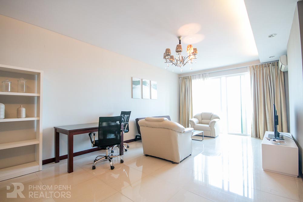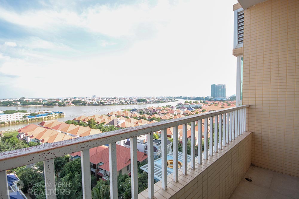 This spacious condominium is located in Tonle Bassac neighborhood has 2 bedrooms, 2 bathrooms, natural light, hardwood floor, river view and city view. The unit is equipped with new furnishing, hot water, balconies, in-unit washing machine, flat screen TVs and built-in closets. Building amenities include security, swimming pool, steam, sauna, fitness center, generator, propane, car, motorbike and bicycle parking.