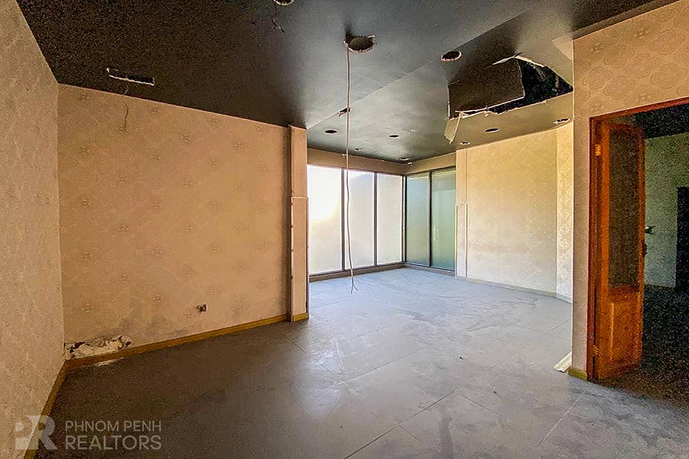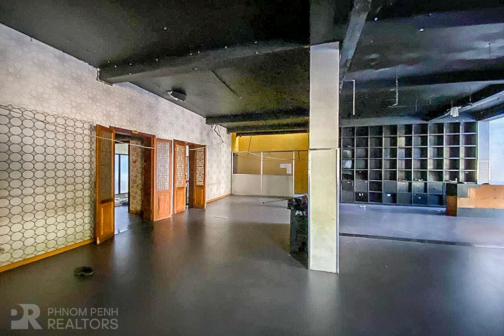 This townhouse is located in the business area of Tonle Bassac has 8 bedrooms and 4 bathrooms with the big kitchen downstairs used to run a restaurant before. The total size is 485 sqm divided into 2 floors and big parking space for cars, motorbikes, bicycles.