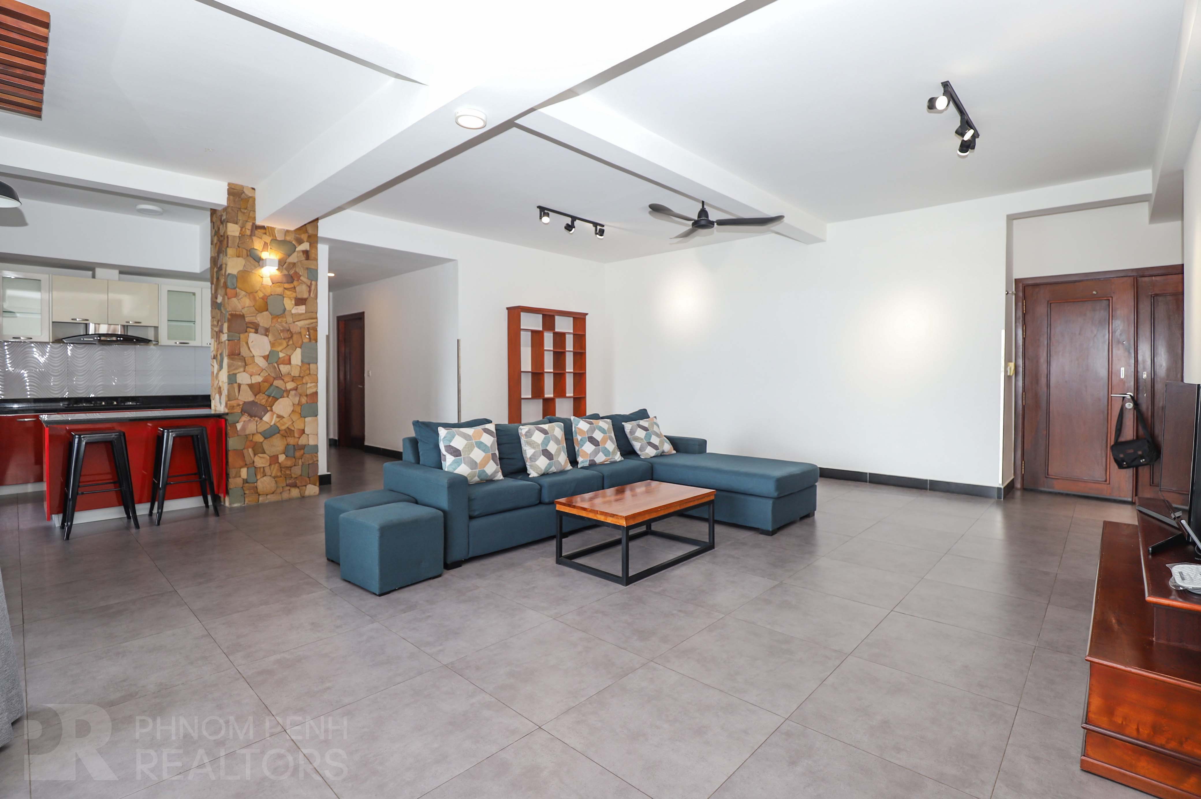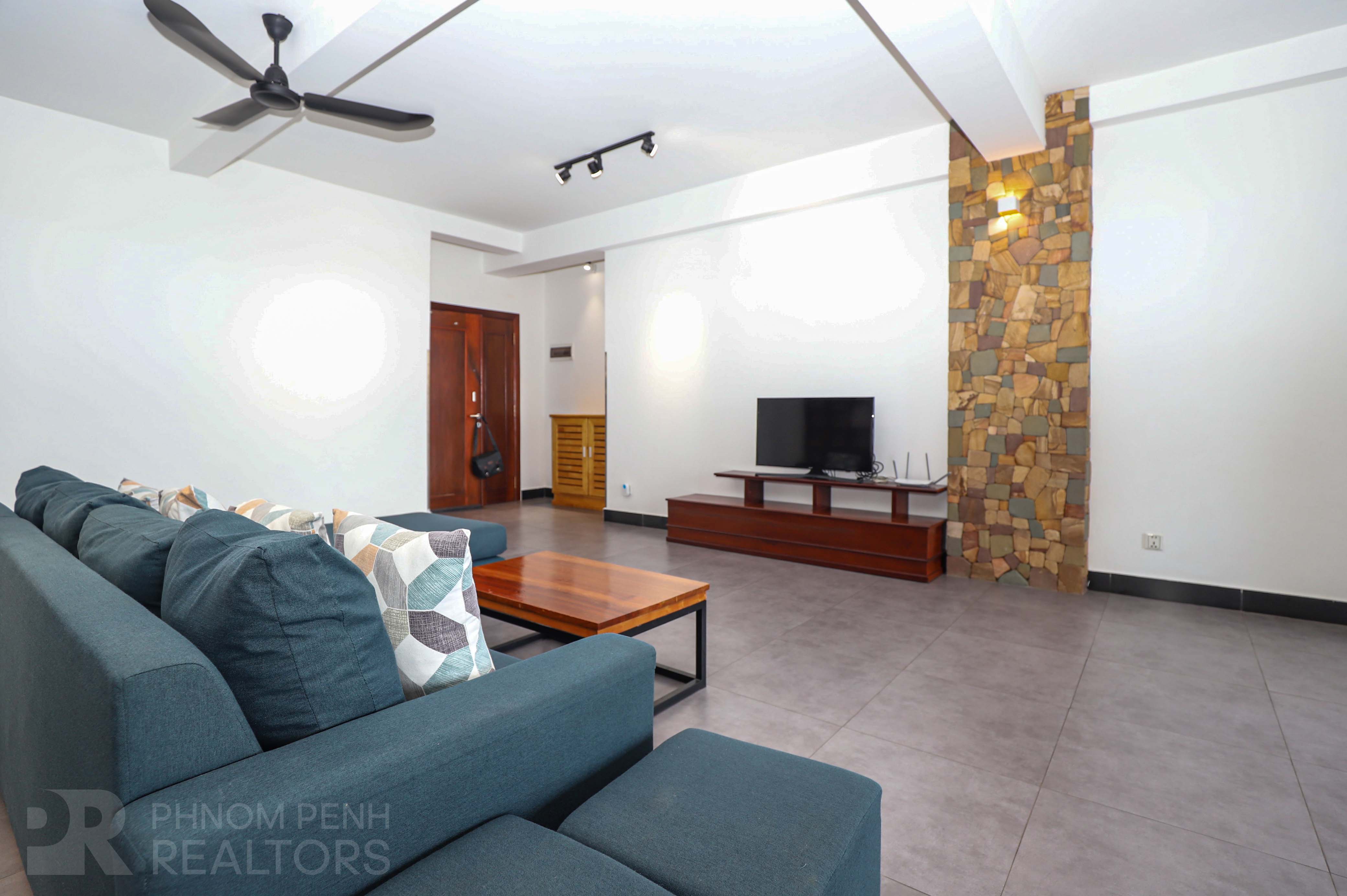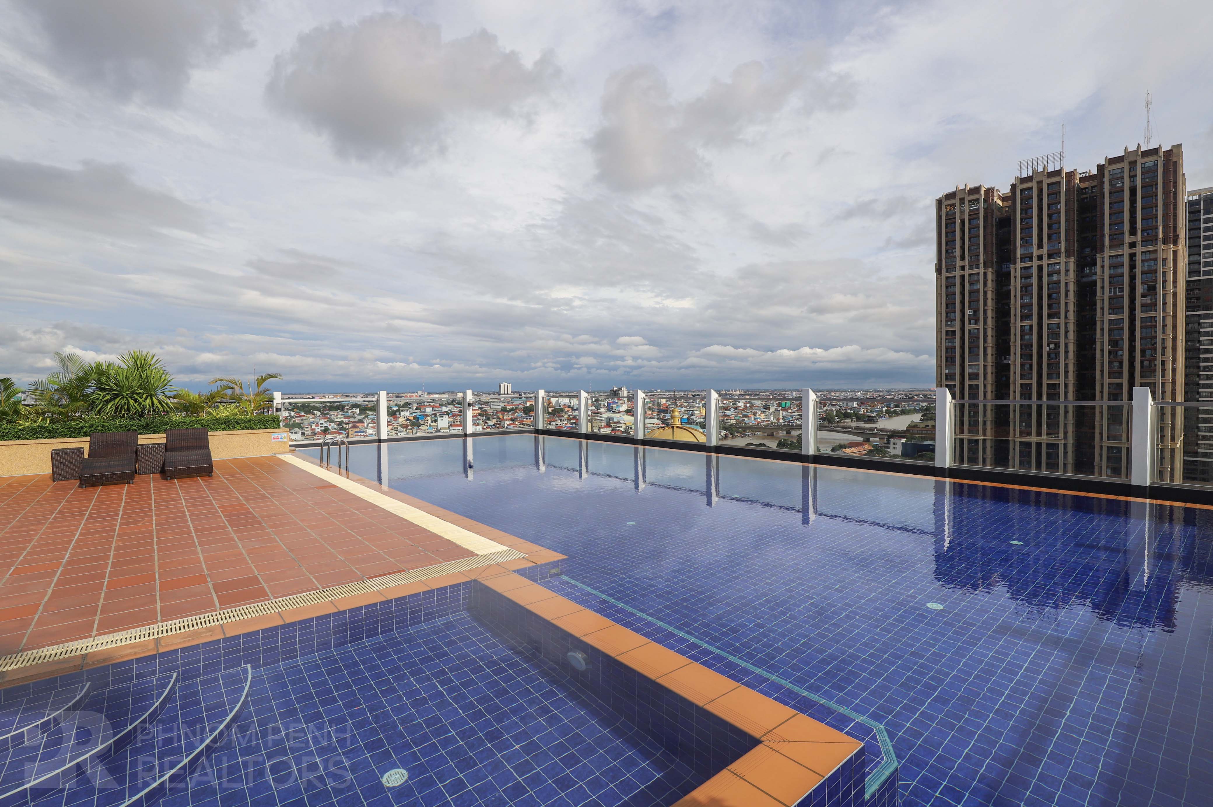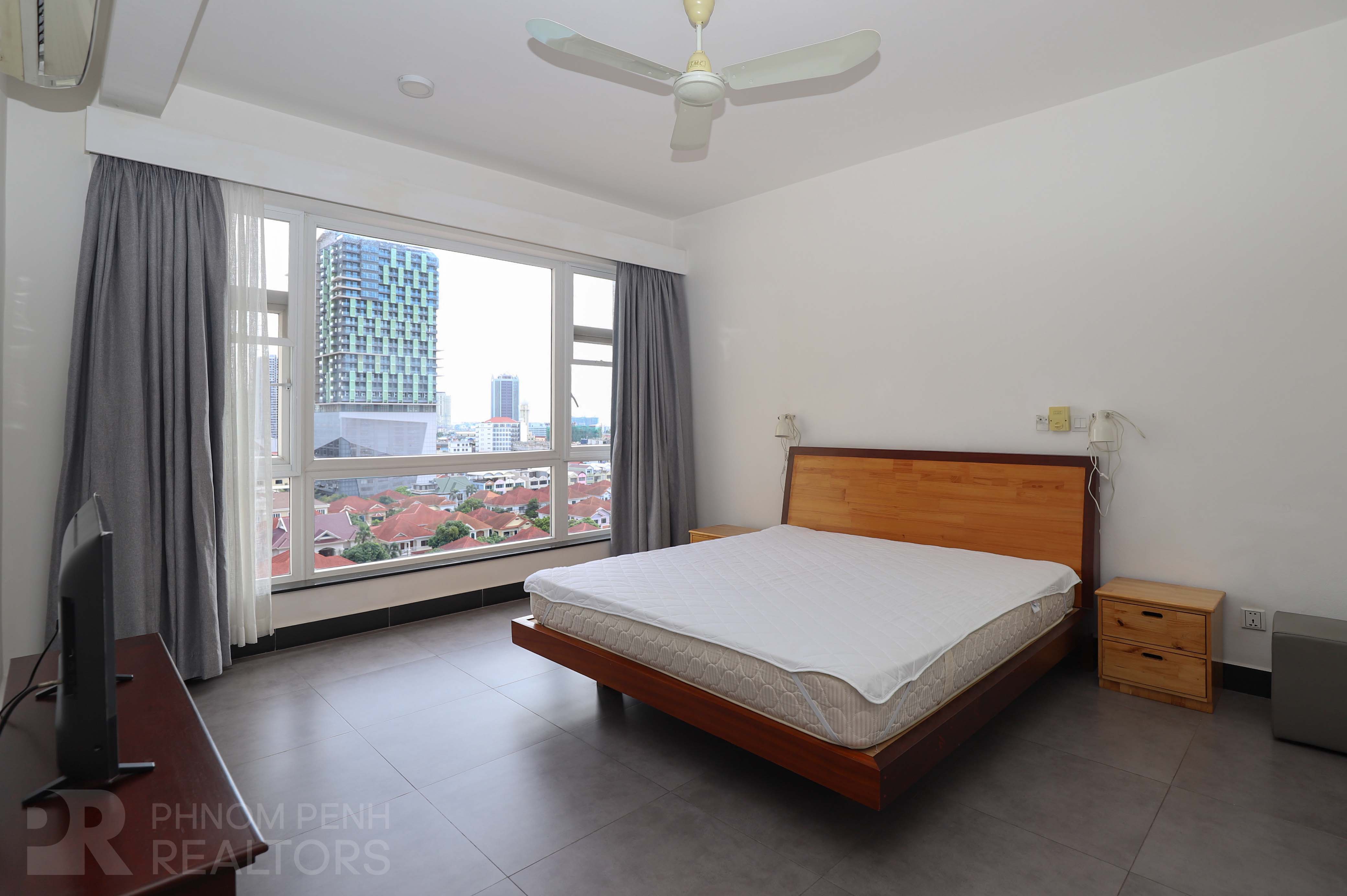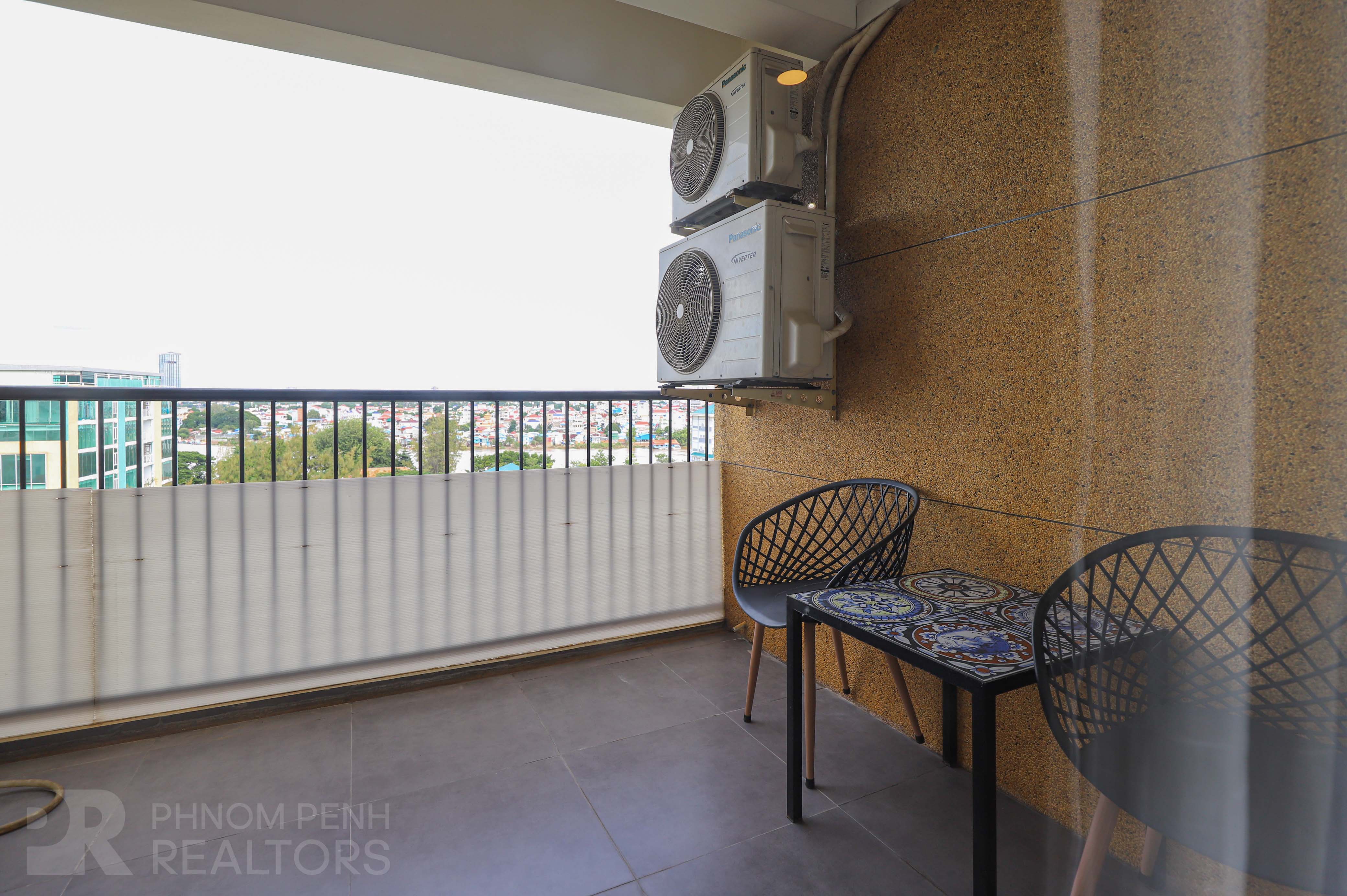 This apartment with full of natural light is located in Tonle Bassac neighborhood. It has 2 bedrooms, 2 bathrooms. This fully furnished unit is equipped with air-con, hot water, refrigerator, oven, a flat screen TV, built-in closet and washing machine. This unit included with internet, cable TV and cleaning once a week. Building amenities include security, elevators, fitness center, swimming pool and parking space for car, motorcycle and bicycle.