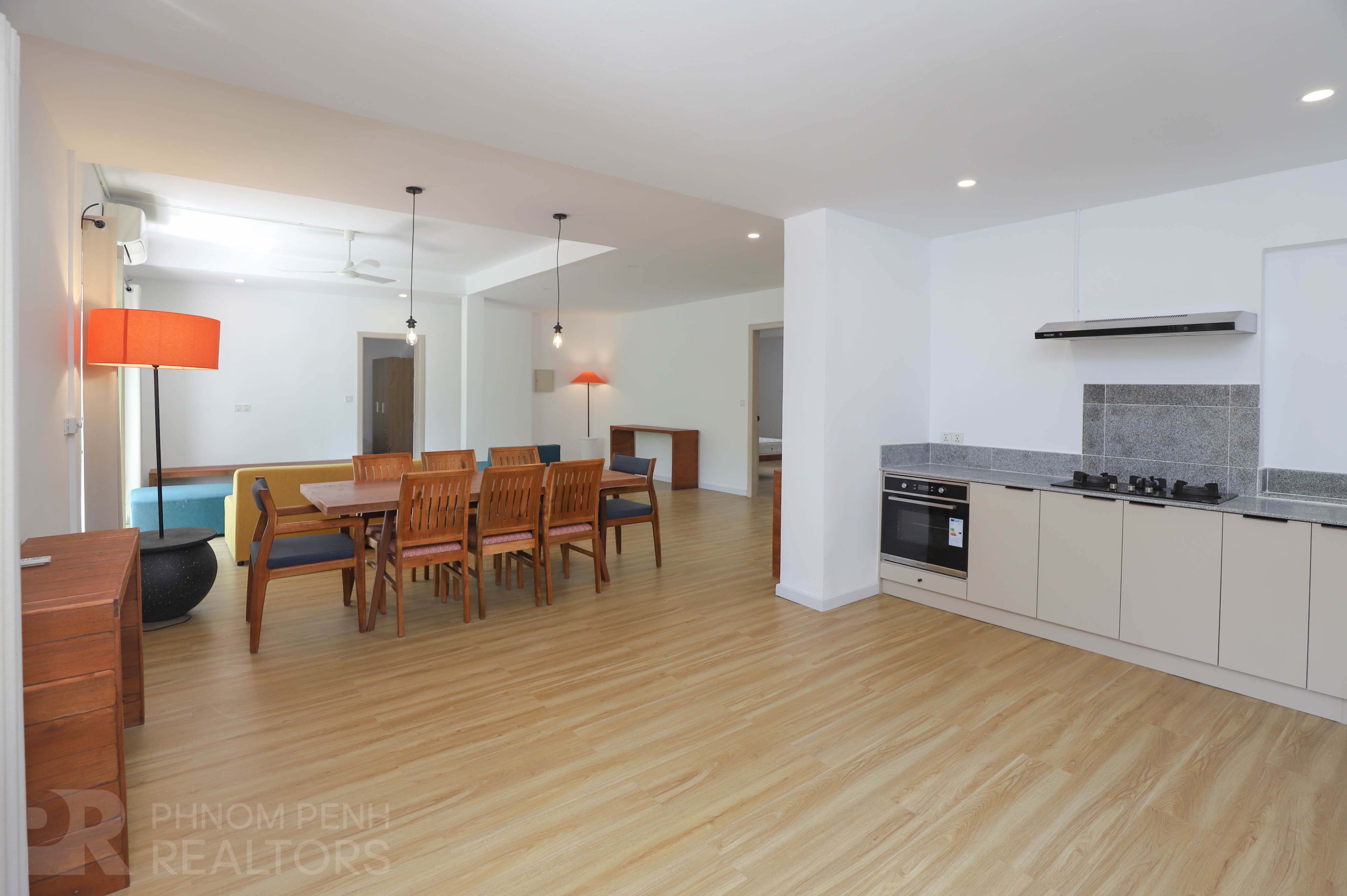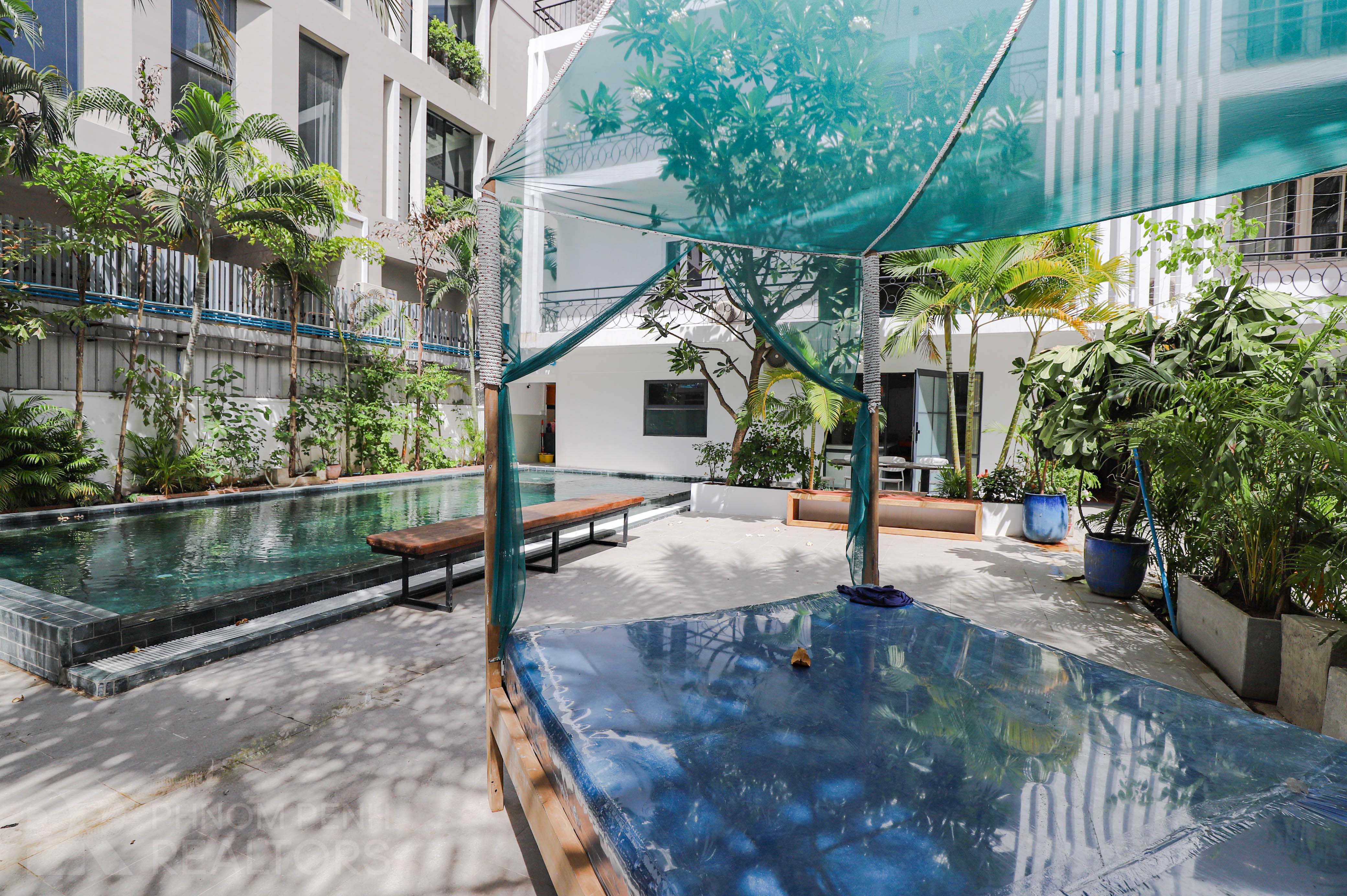 This apartment for rent in Tonlebassac area. it has 3 bedrooms and 4 bathrooms and kitchen . The unit is equipped with newly furnished , an air-co, closet built in, refrigerator, and washing machine. Building amenities include Internet access ( Wi-Fi ) . Building facilities has swimming pool and parking space for car and motorcycle.
