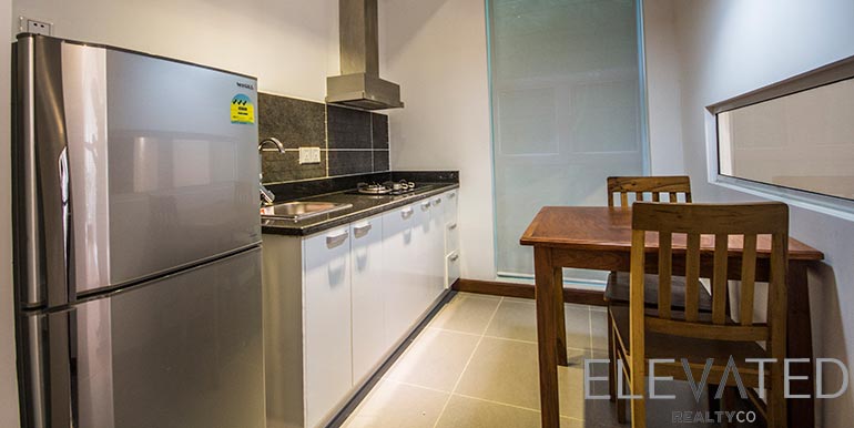 This modern apartment located in the Tuk Laak I neighbourhood has 1 bedroom, 1 bathroom, built in closets, flat screen TVs, natural light, hardwood floor, and furnishings. The unit is equipped with a balcony. Building amenities include internet, security, cable, cleaning 1 time per week, water, garbage collection, car, moto, and bicycle parking.