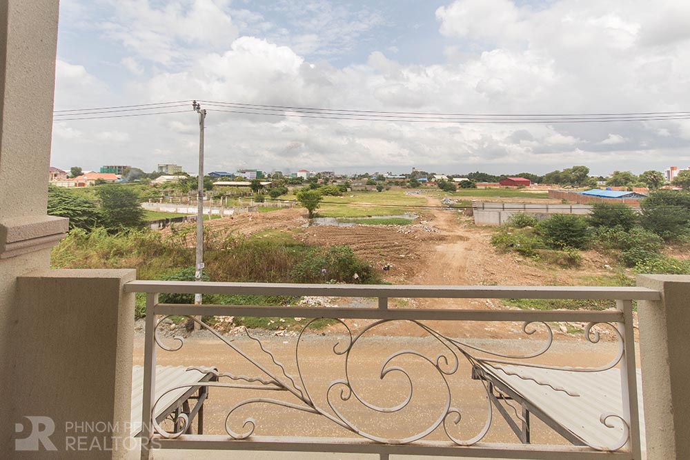 This townhouse located in Toul Kork area has 2 floor, 4 bedrooms, 5 bathrooms and natural light. This furnished townhouse is equipped with balconies. Townhouse amenities include with parking space for car, moto and bicycle.