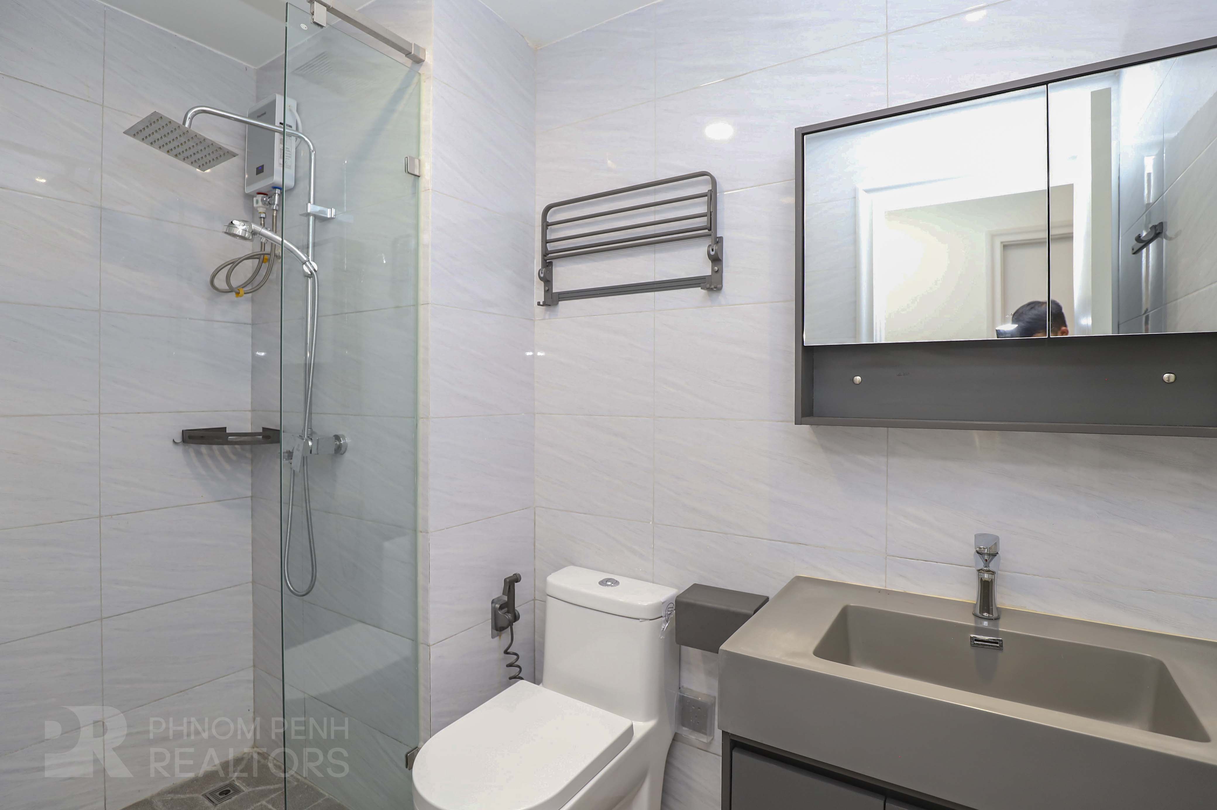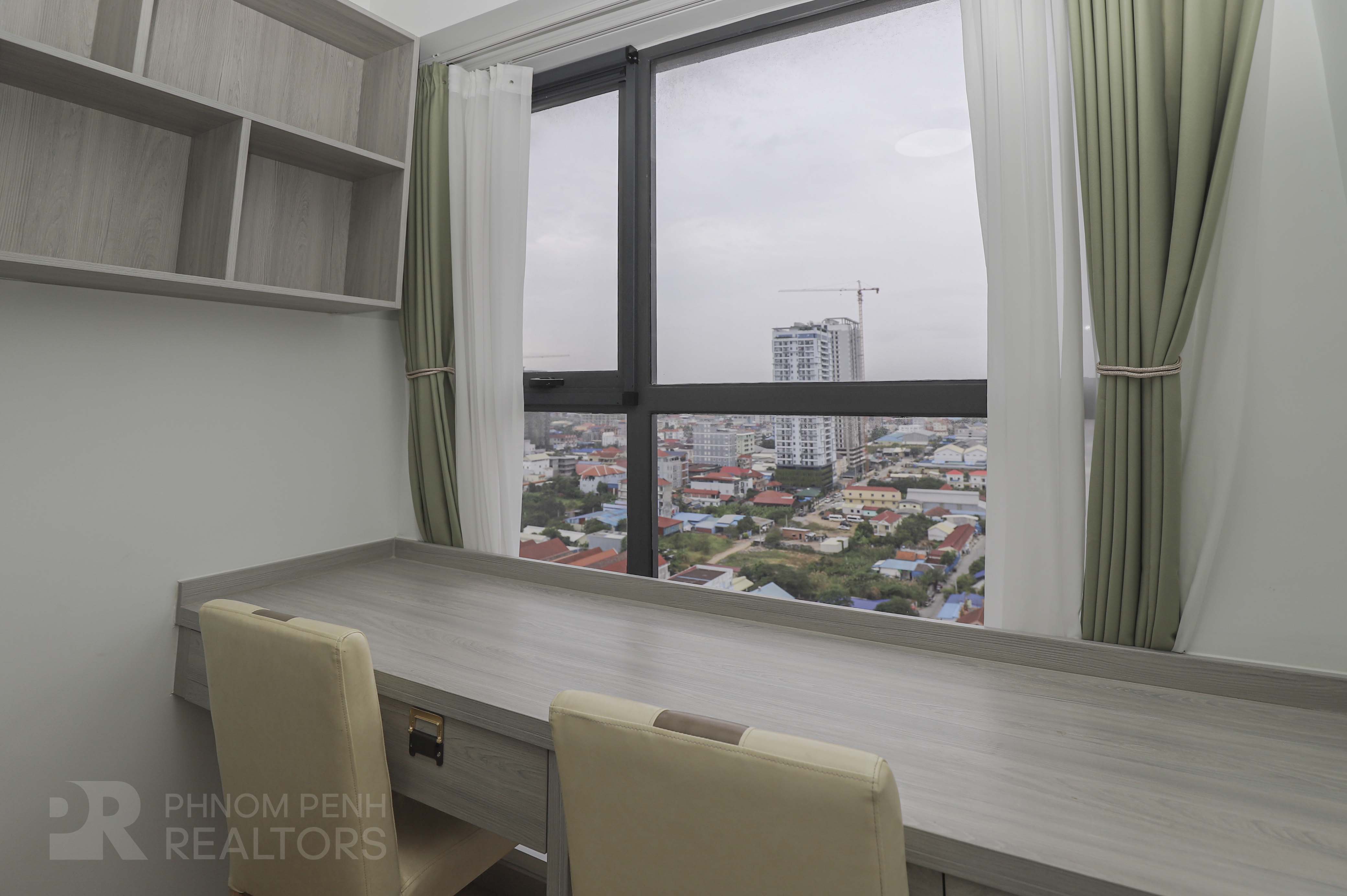 This condominium is located in Toul Kork neighborhood has 2 bedrooms, 2 bathrooms, full furnish, flat screen TVs and natural light. The unit is equipped with a washing machine. Building amenities include security ,gym , play ground and cleaning once a week . This building excluded , parking car motor ,water, and internet.